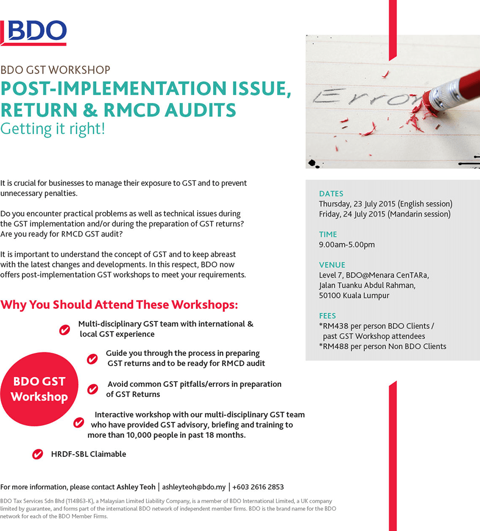 BDO Tax Services Sdn Bhd. All rights reserved. BDO Tax Services Sdn Bhd (114863-K), a Malaysian Limited Liability Company, is a member of BDO International Limited, a UK company limited by guarantee, and forms part of the international BDO network of independent member firms. BDO is the brand name for the BDO network and for each of the BDO Member Firms. |